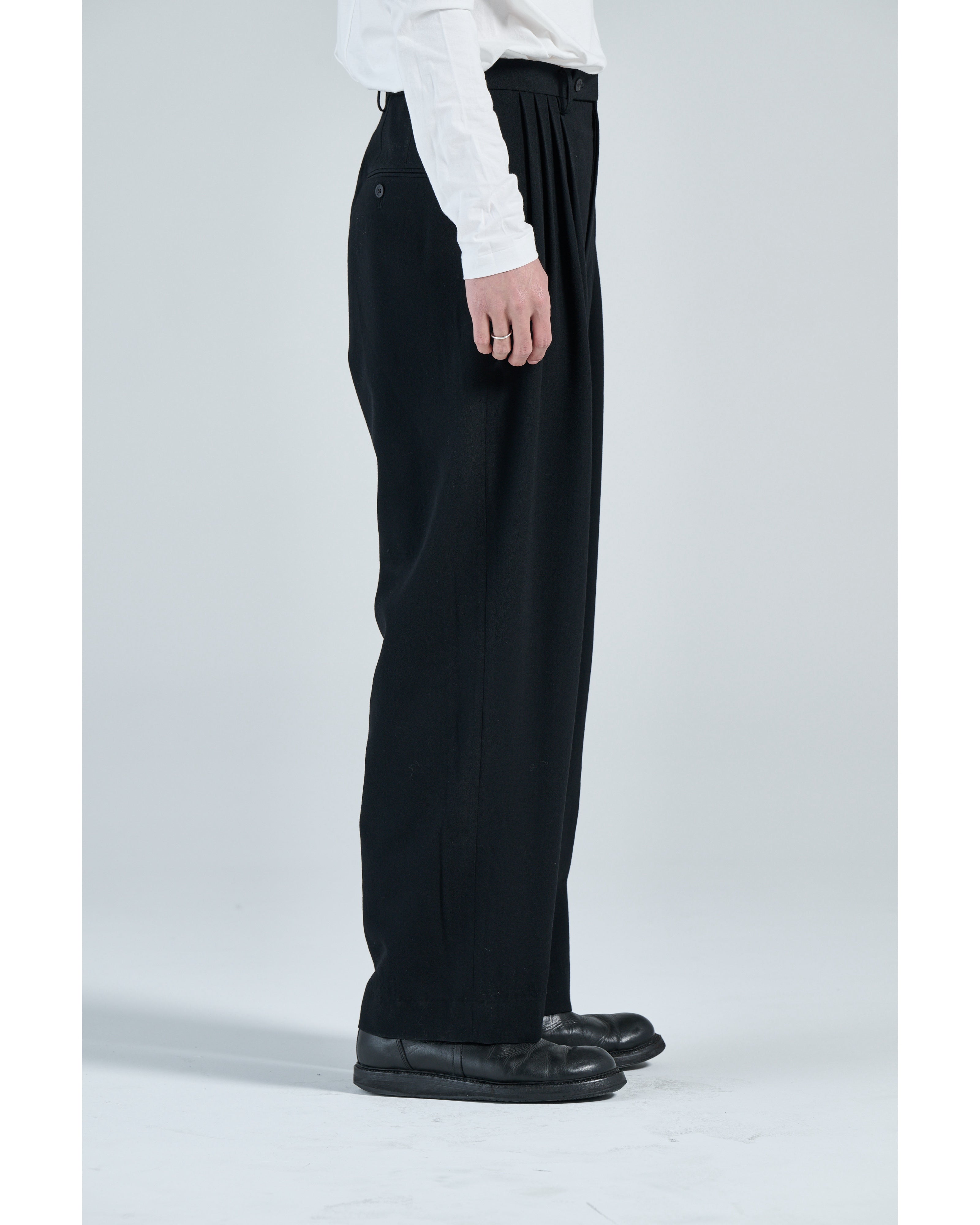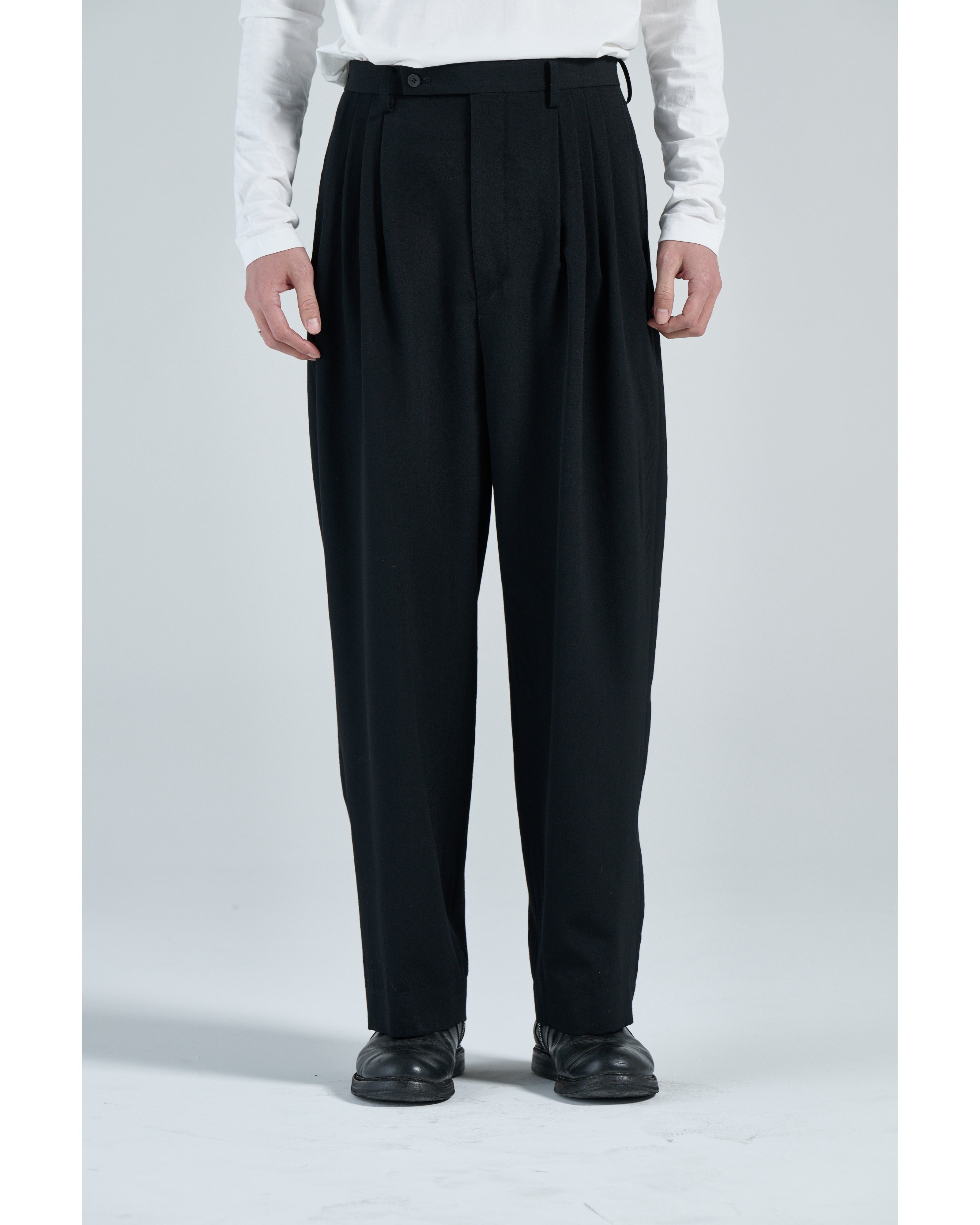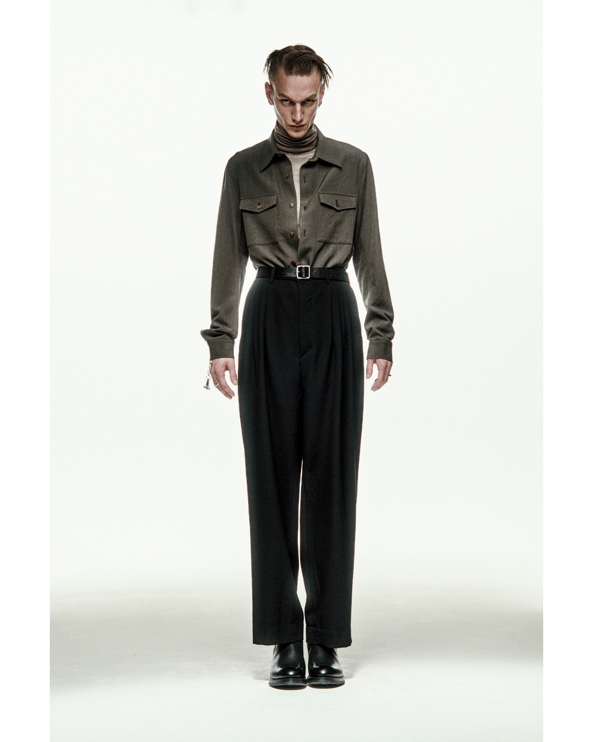 ・腰に4本のタックを入れた、緩やかなテーパードのトラウザーとなっており、ドレッシーでエレガントな仕上がり。