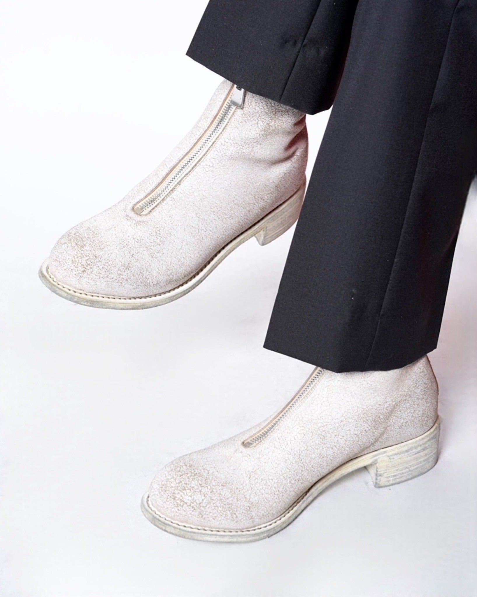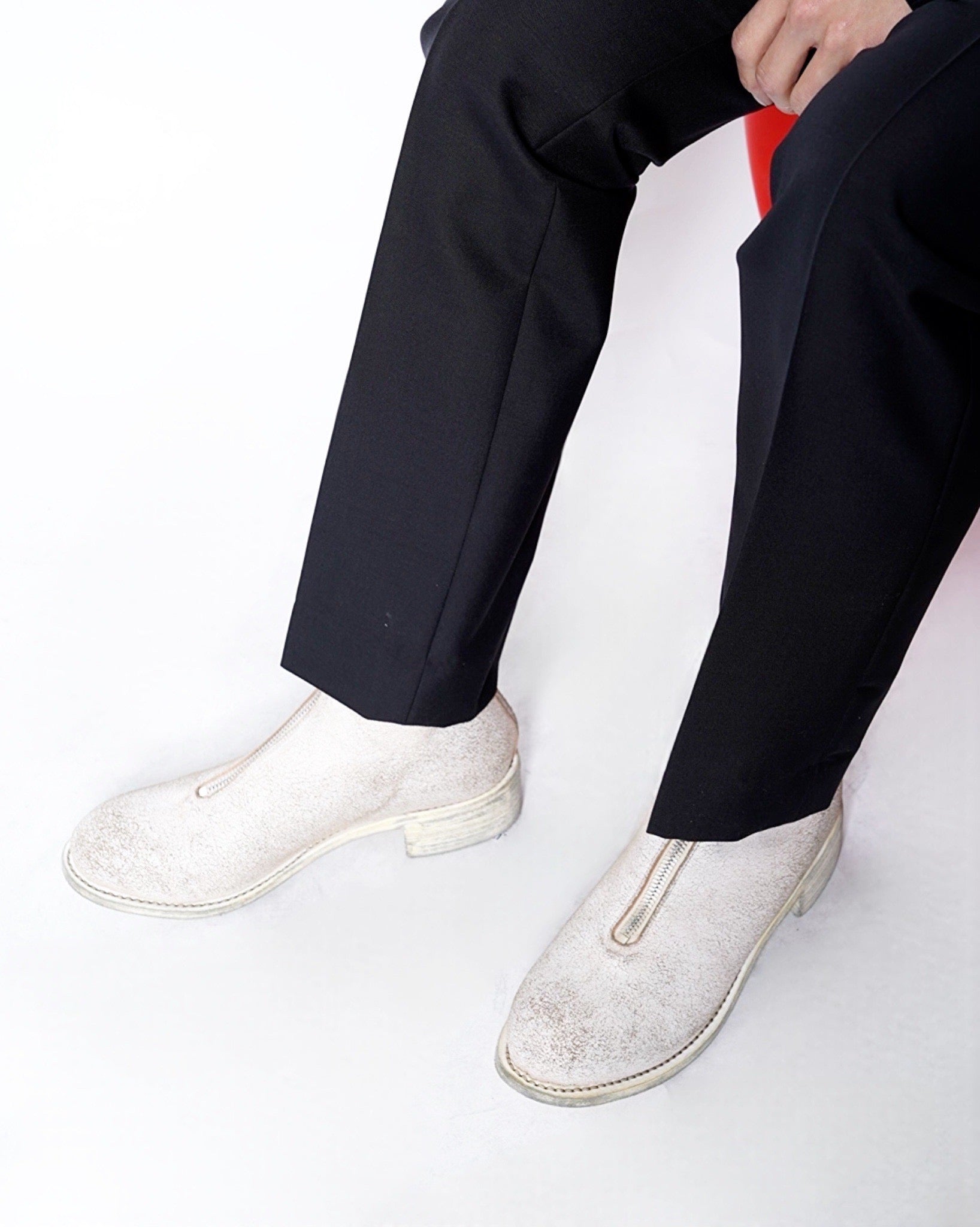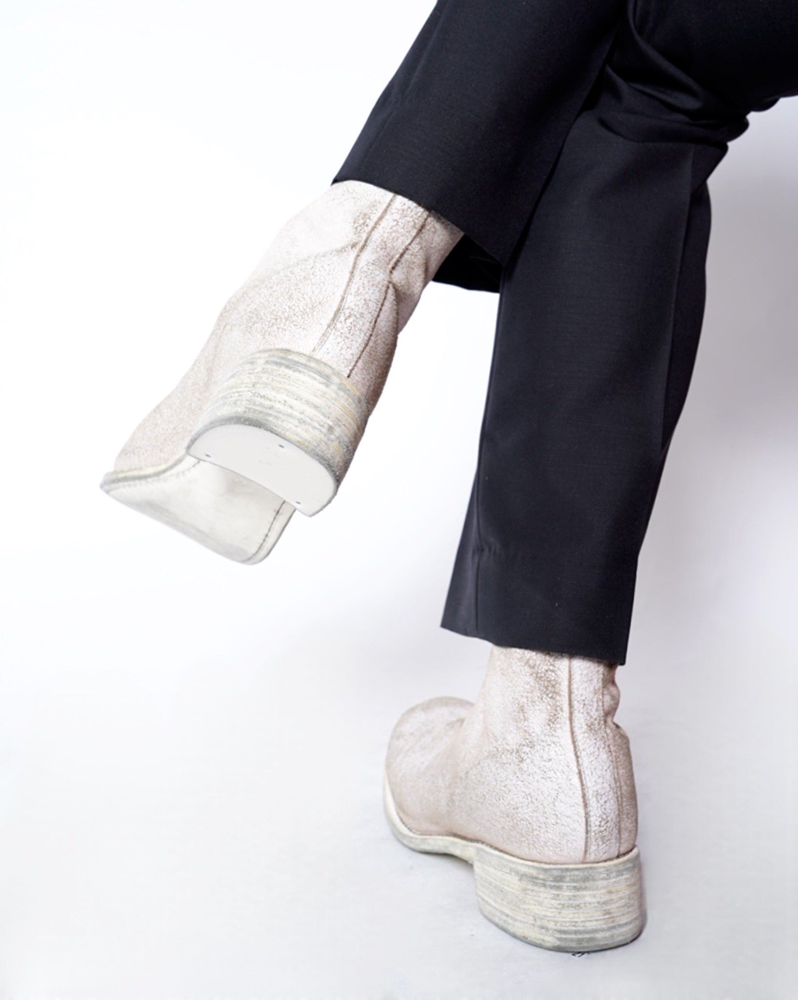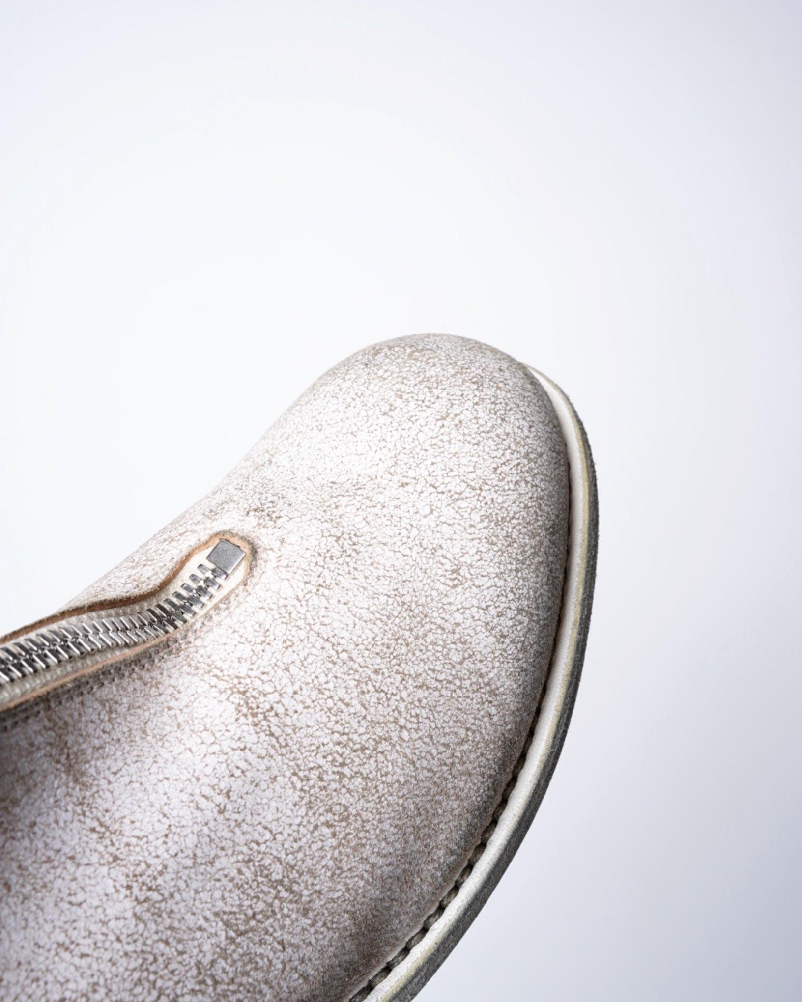 ・ナチュラルカラーのスウェードの表面にまだらにホワイトのコーティングを施すことで、アルチザン且つ退廃的な雰囲気を強めています。