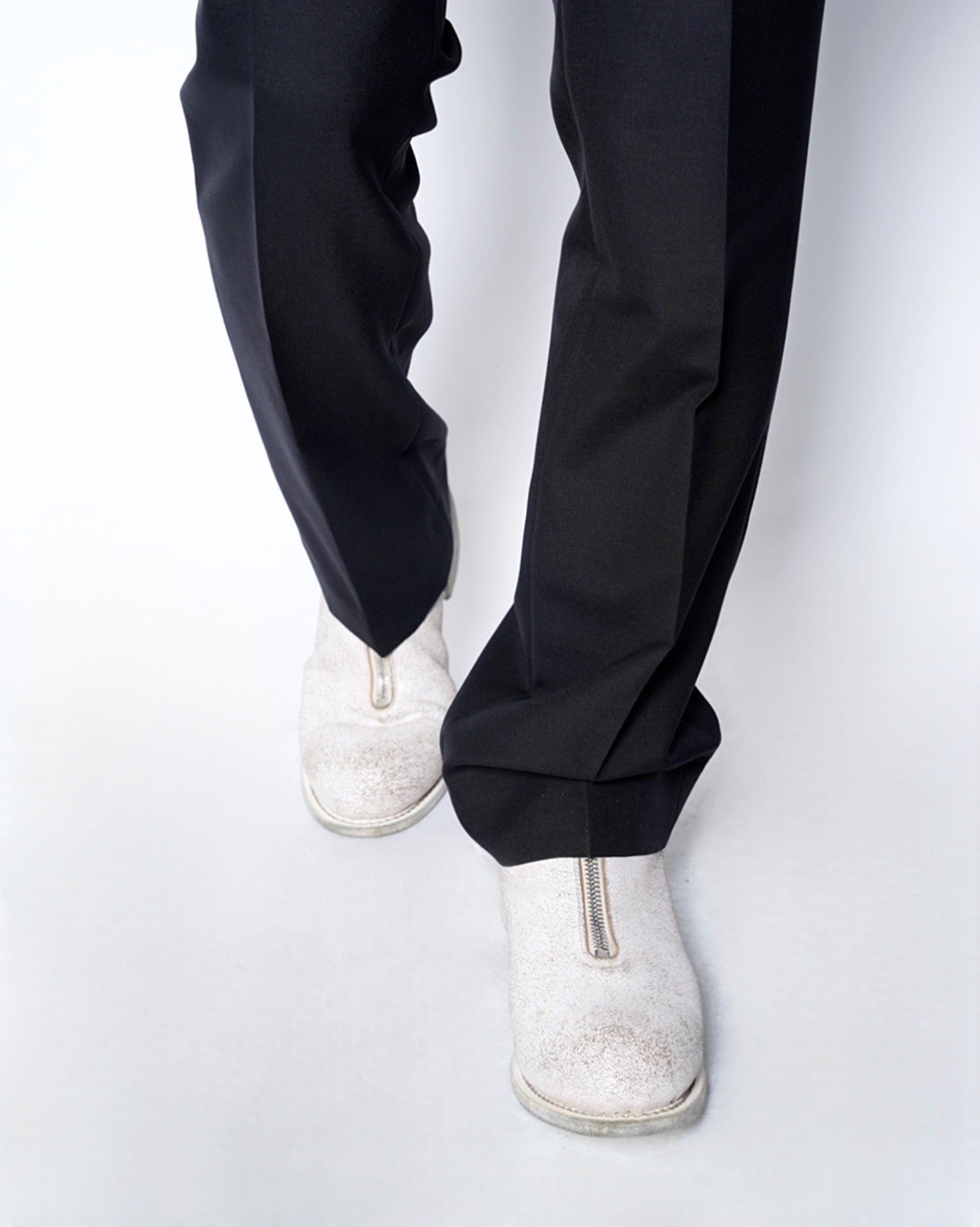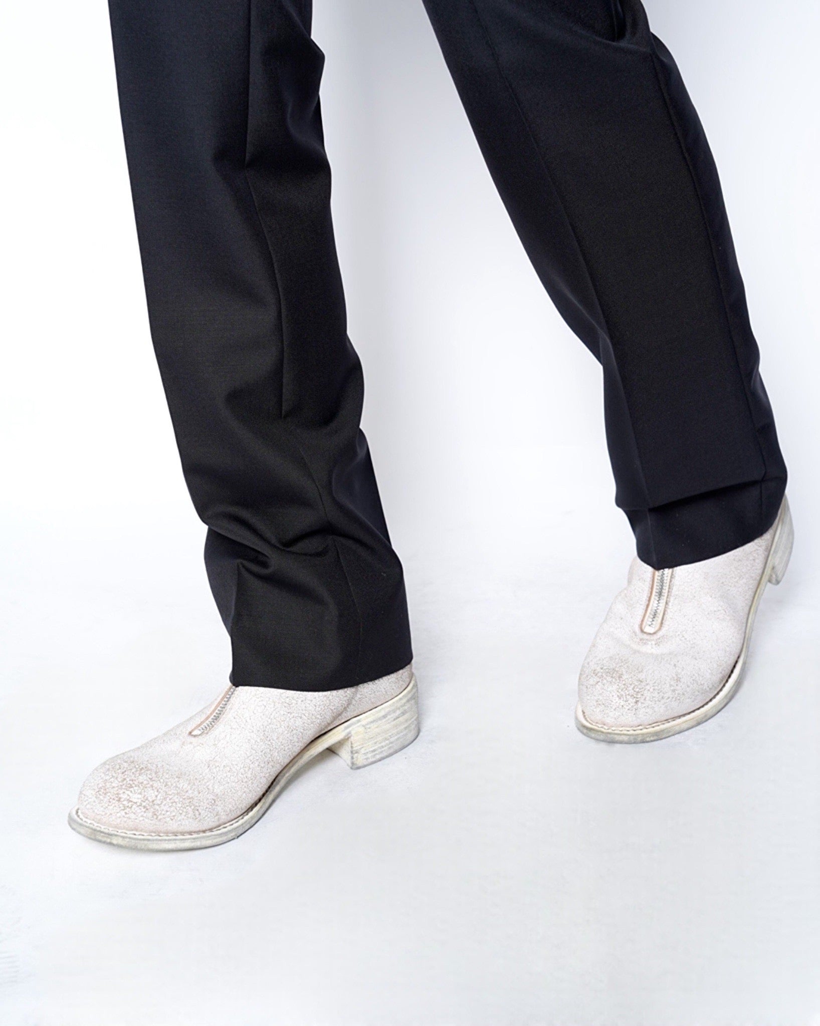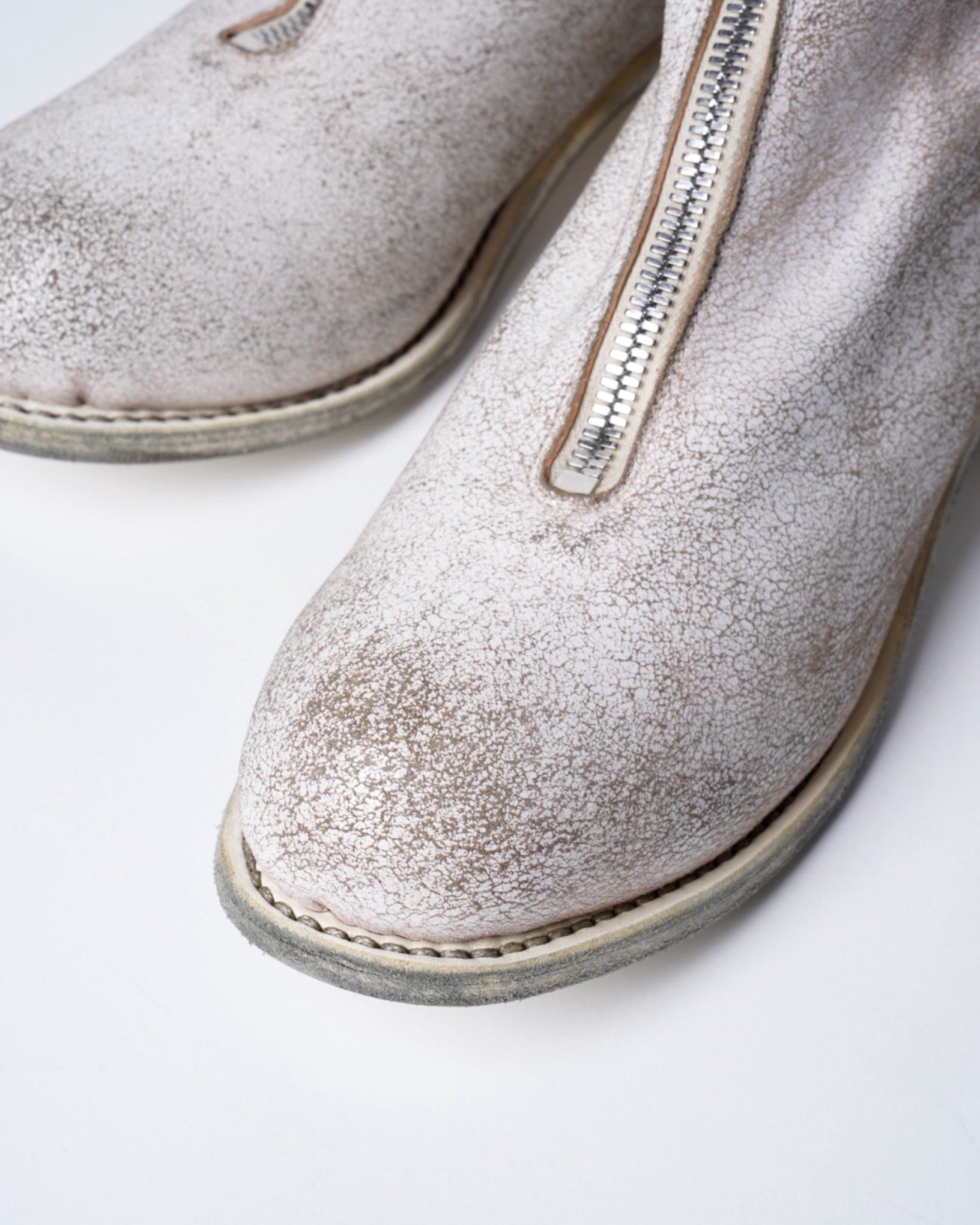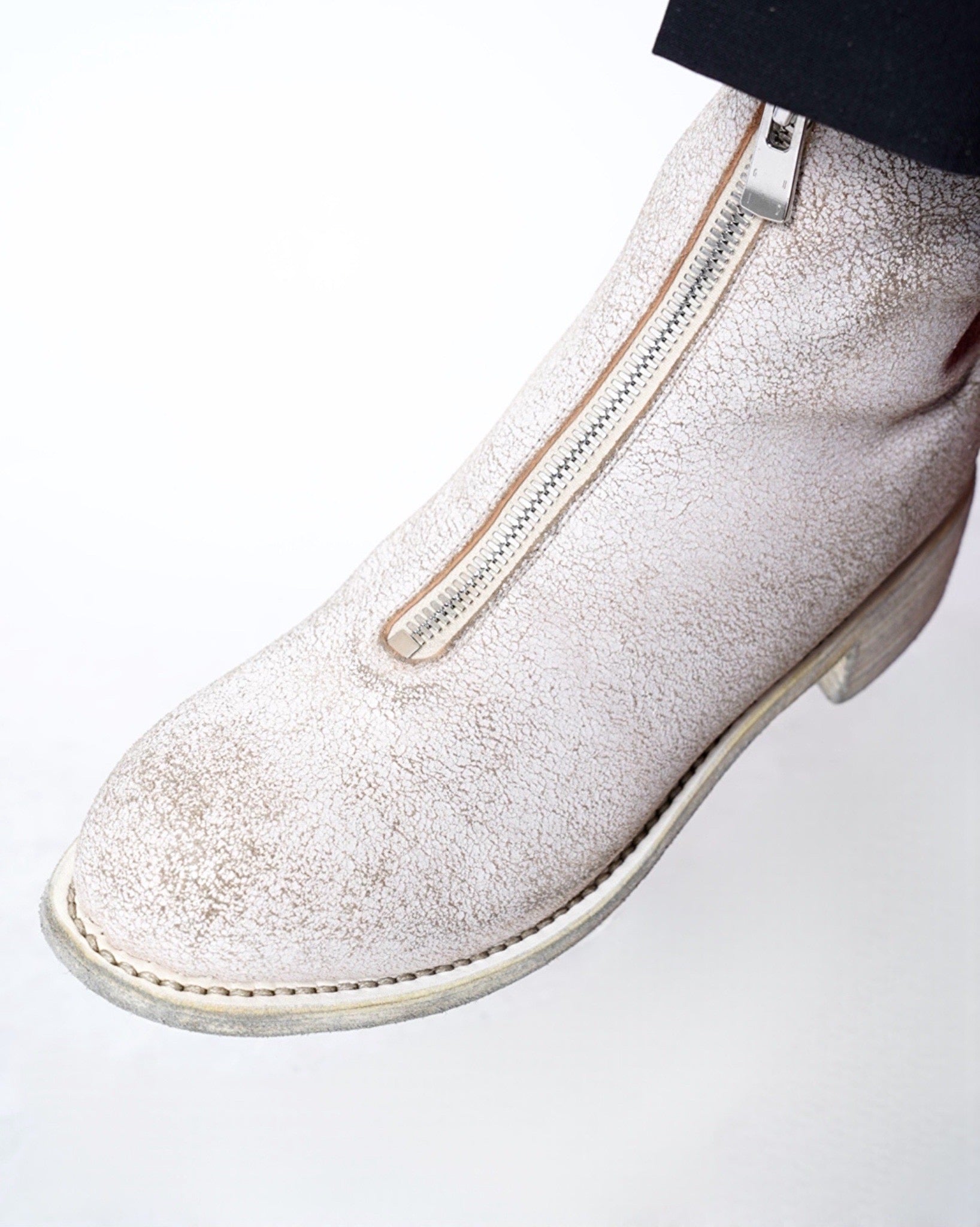 ・ナチュラルカラーのスウェードの表面にまだらにホワイトのコーティングを施すことで、アルチザン且つ退廃的な雰囲気を強めています。