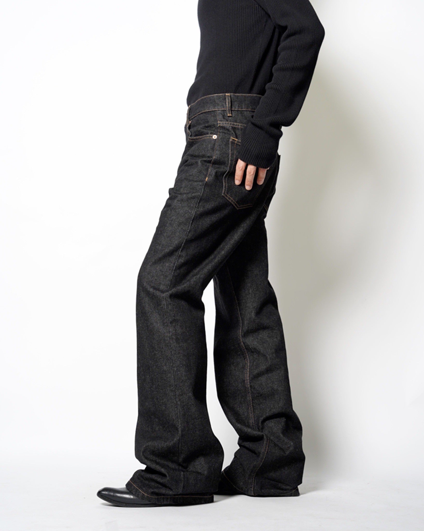・緩やかで無理のないフレアシルエットにより、デニムパンツのスタイリングを問わない普遍性をそのままに、ナチュラルにスタイルアップすることが魅力となっています。