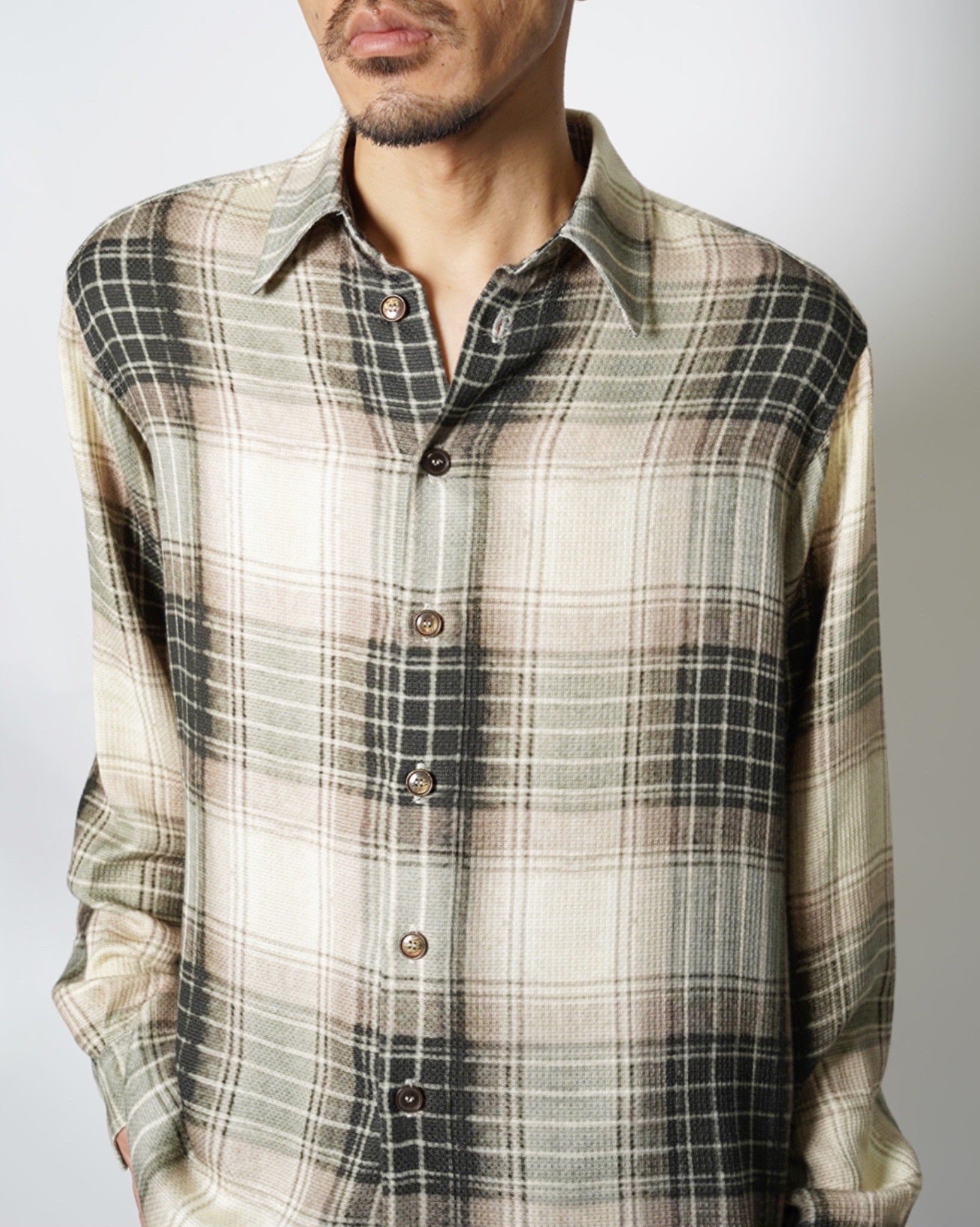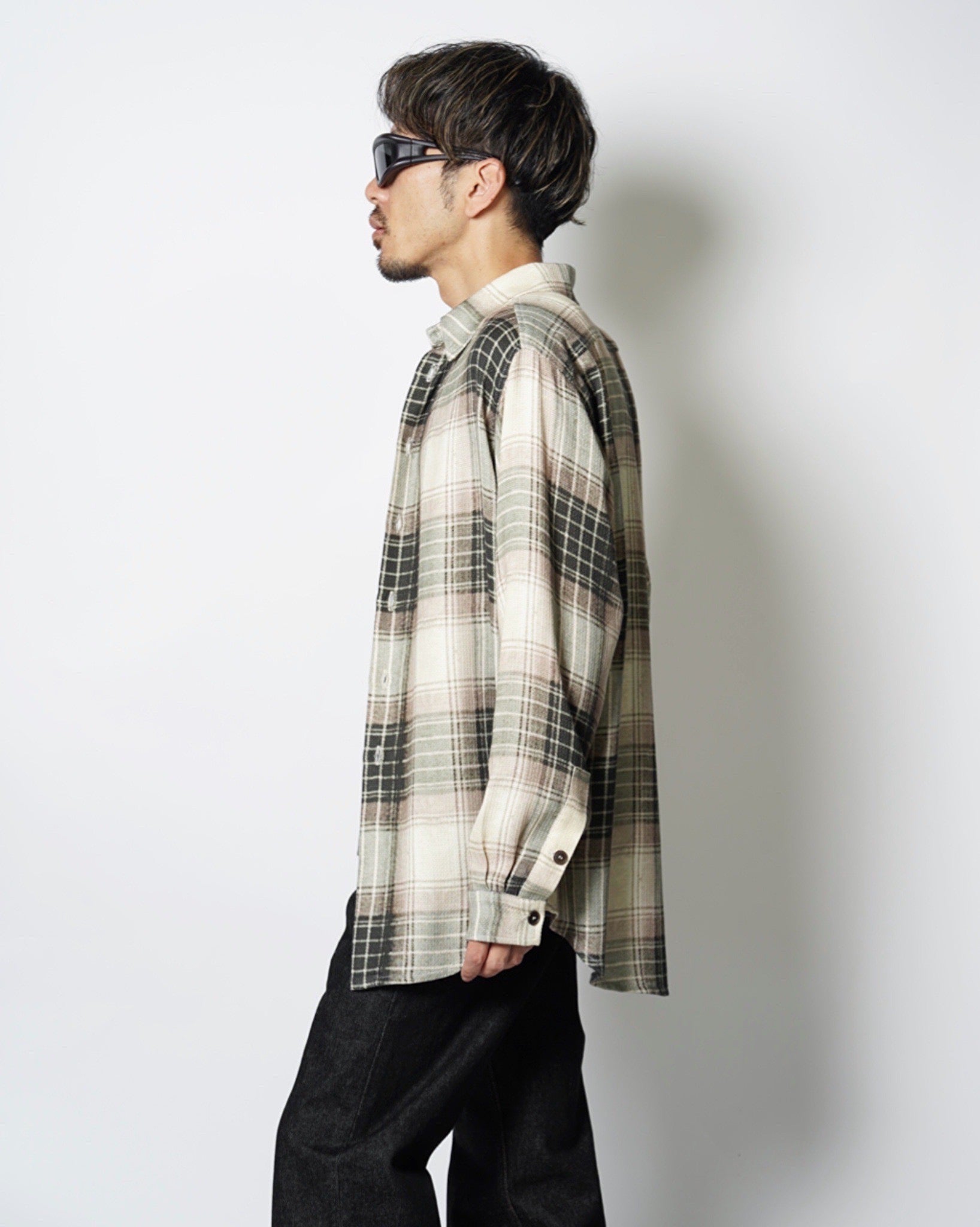 ・生地の落ち感がしっかりと活きるフォルムで、リラックスとしたルーズ感のあるシャツとなっています。