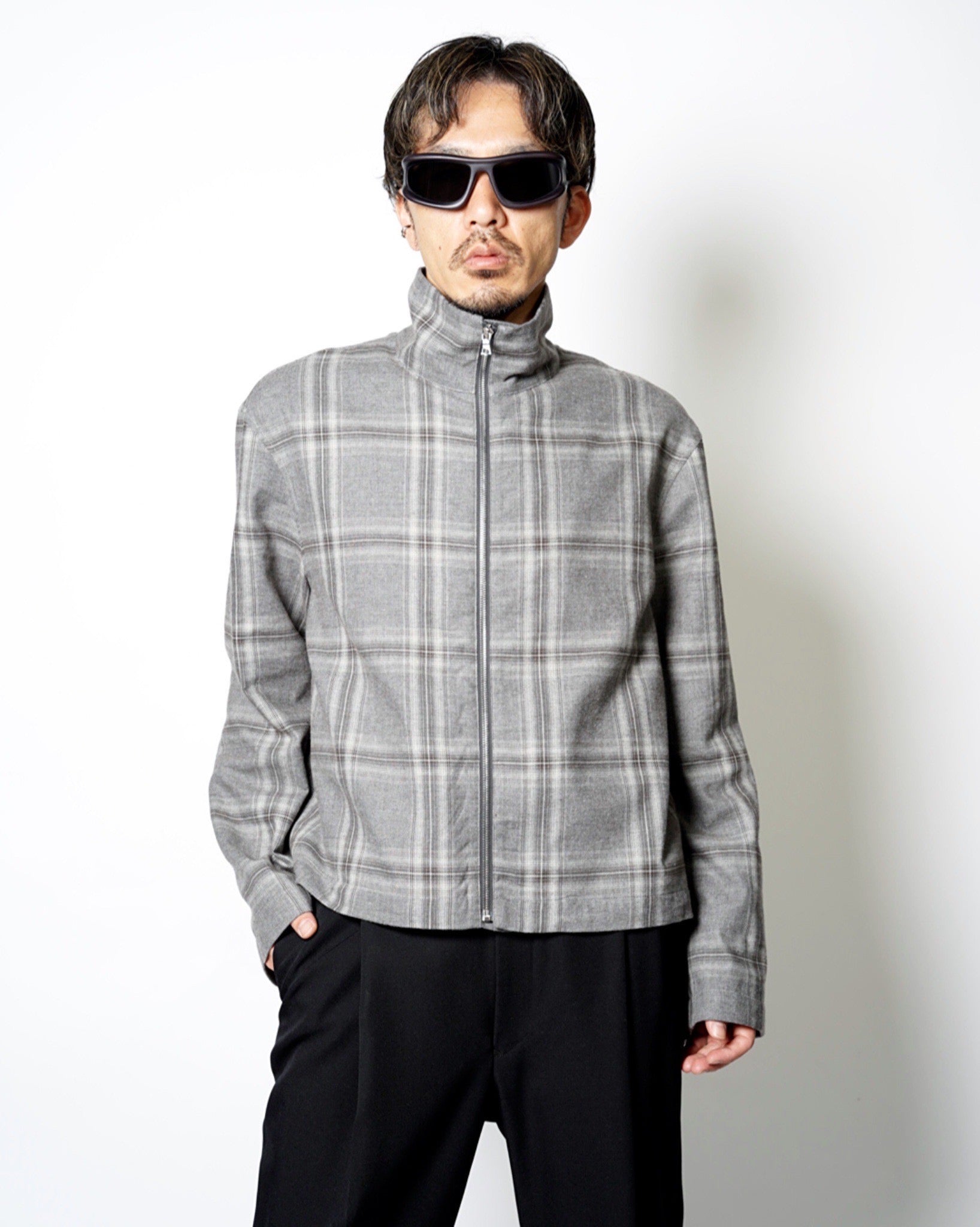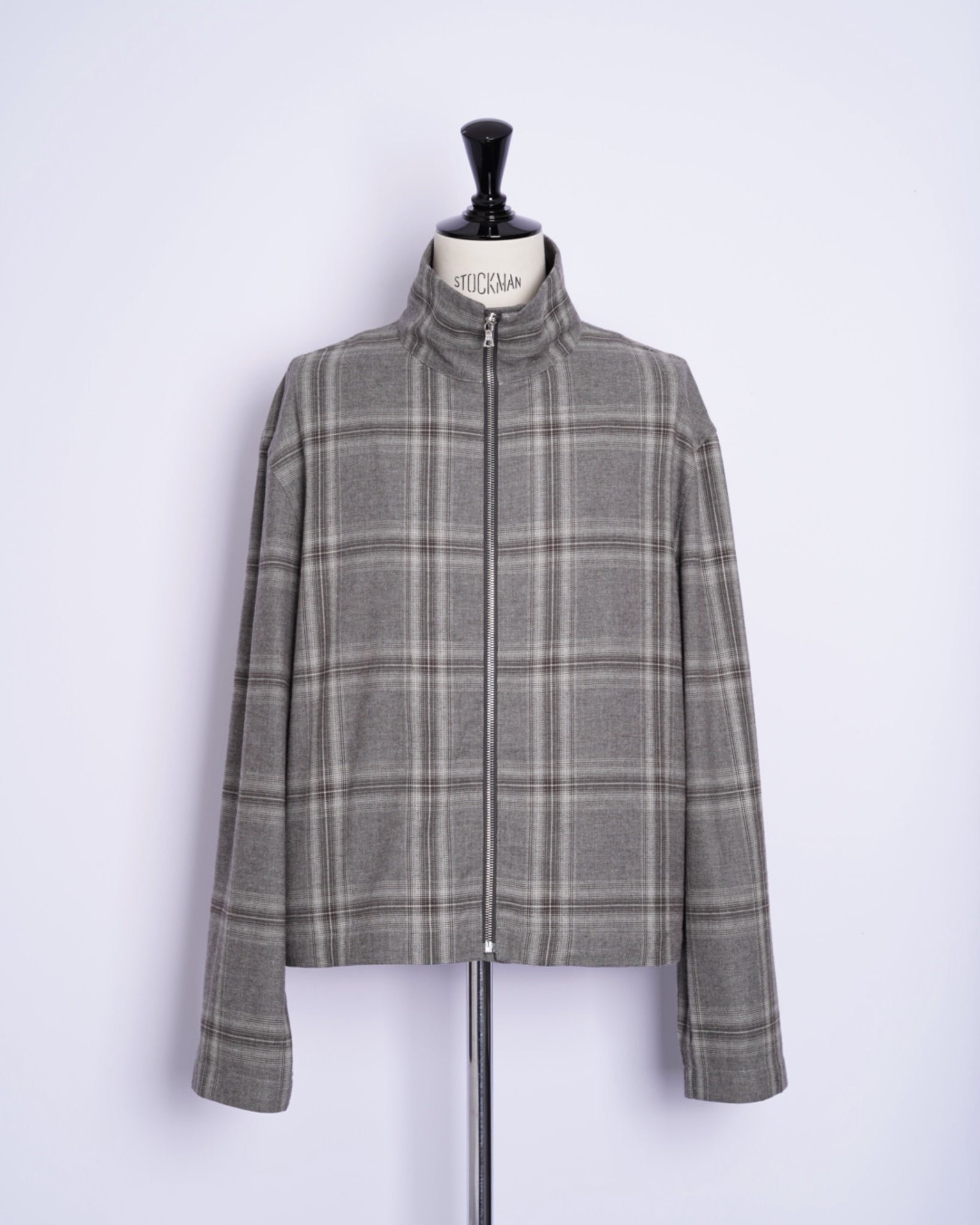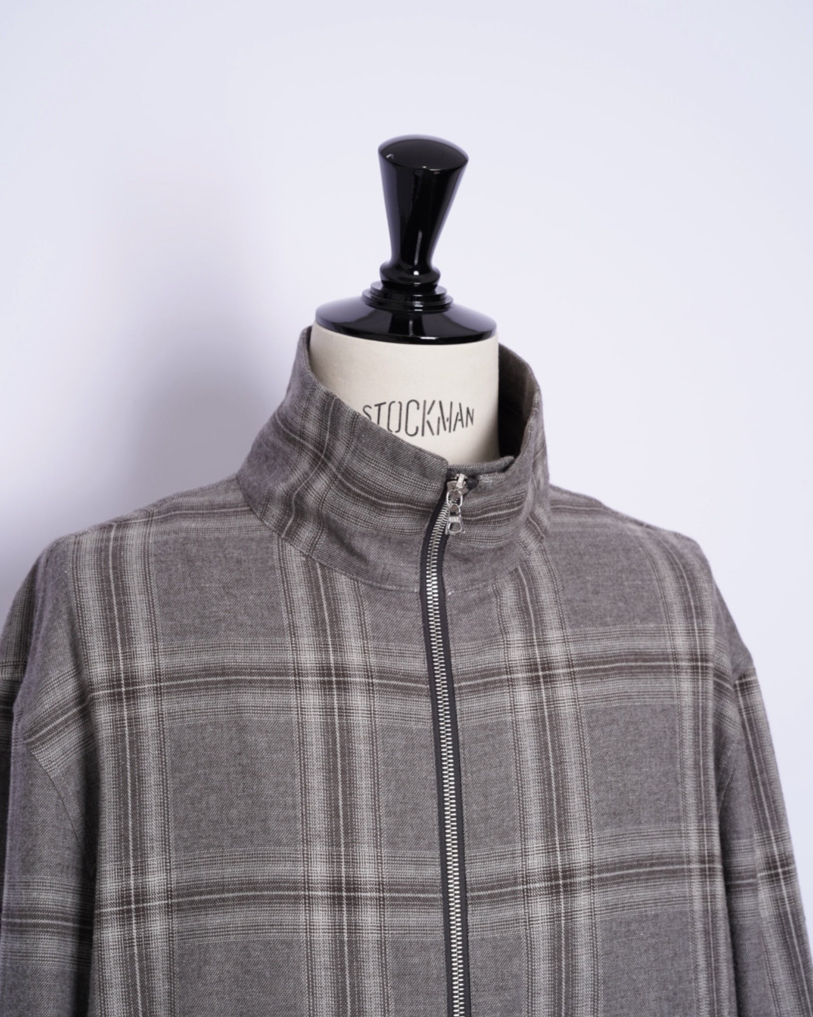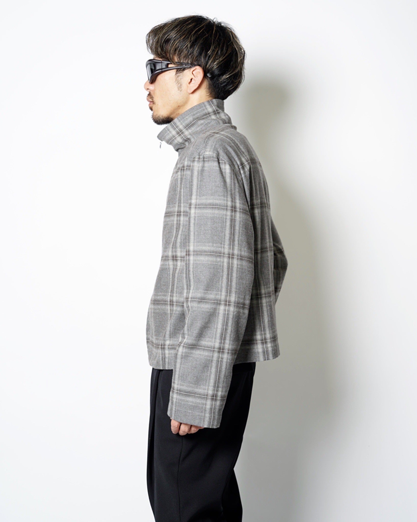 ・スタンドネックのブルゾンでオーセンティックなアイテムをベースとしながら、シックなグレーベースの品のあるウィンドウペンチェックで野暮ったさを感じさせないデザインに。