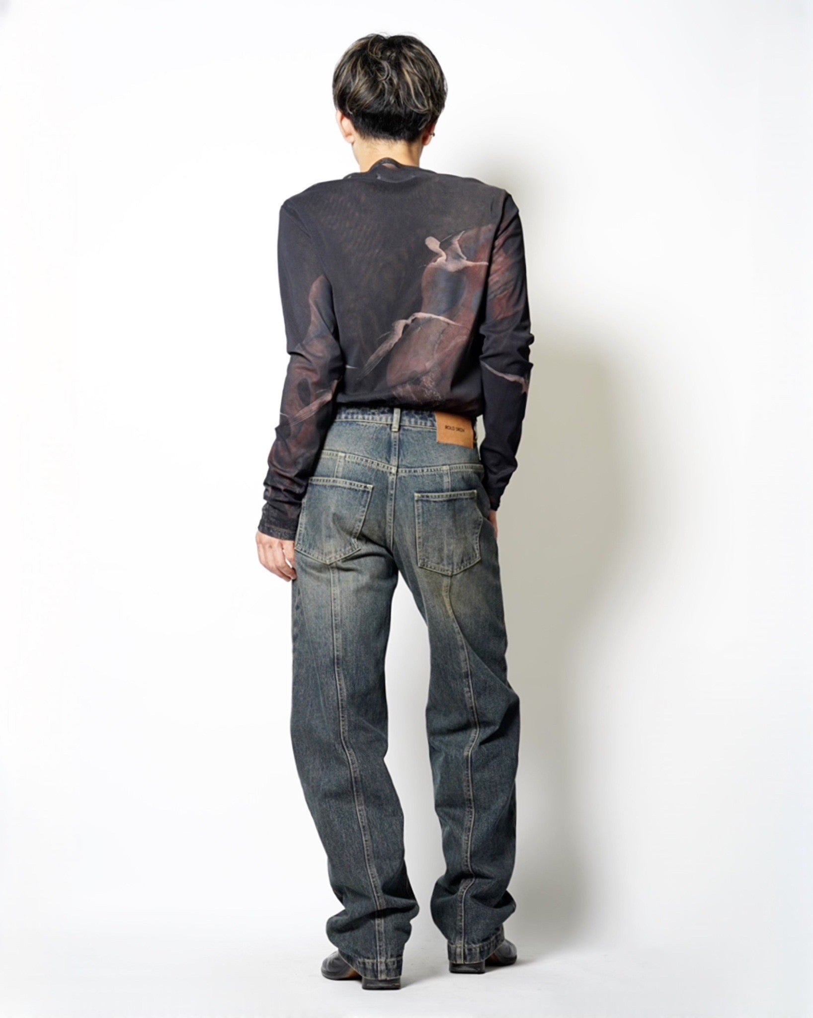 ・バックのシームも特徴となっており、加工によるパッカリングがより強調されています。