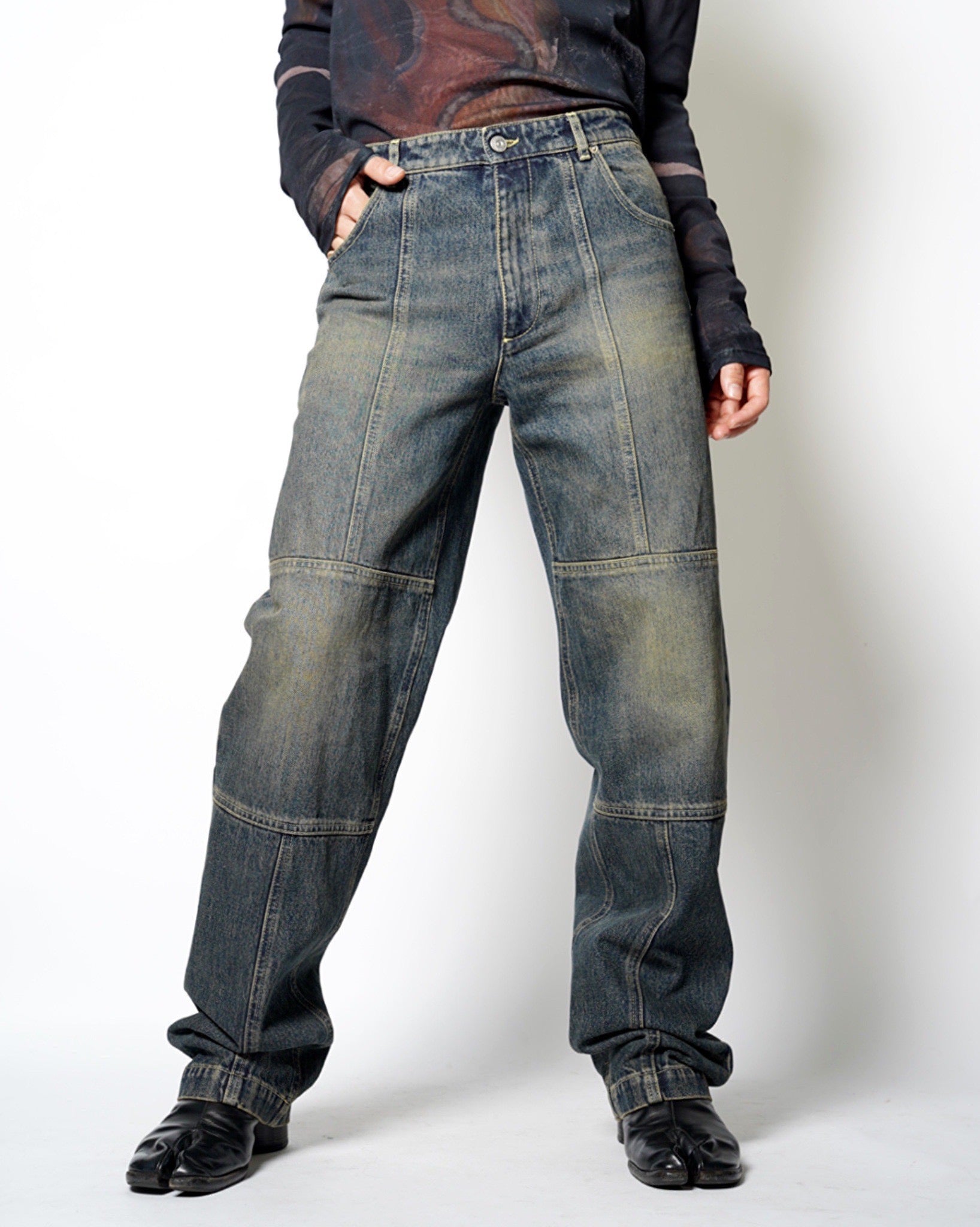 ・ワーキッシュな表情のデニムパンツですが、程よくワイドなシルエットでスタイリングを問わないデニムパンツとなっています。