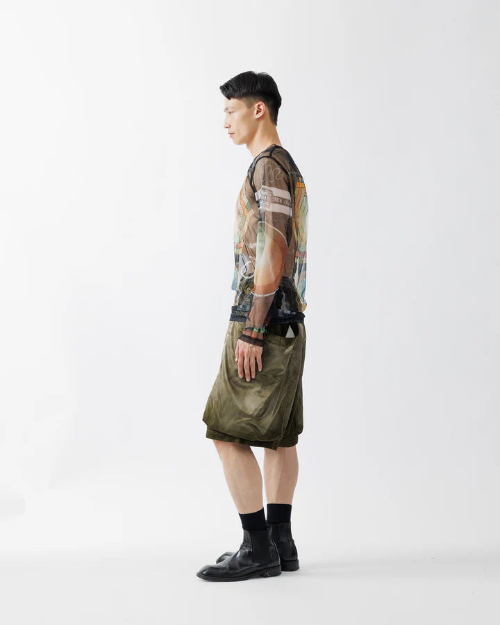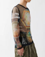 総柄プリントを施したチュール素材が際立つ、メンズでは稀少なセカンドスキンシャツ。